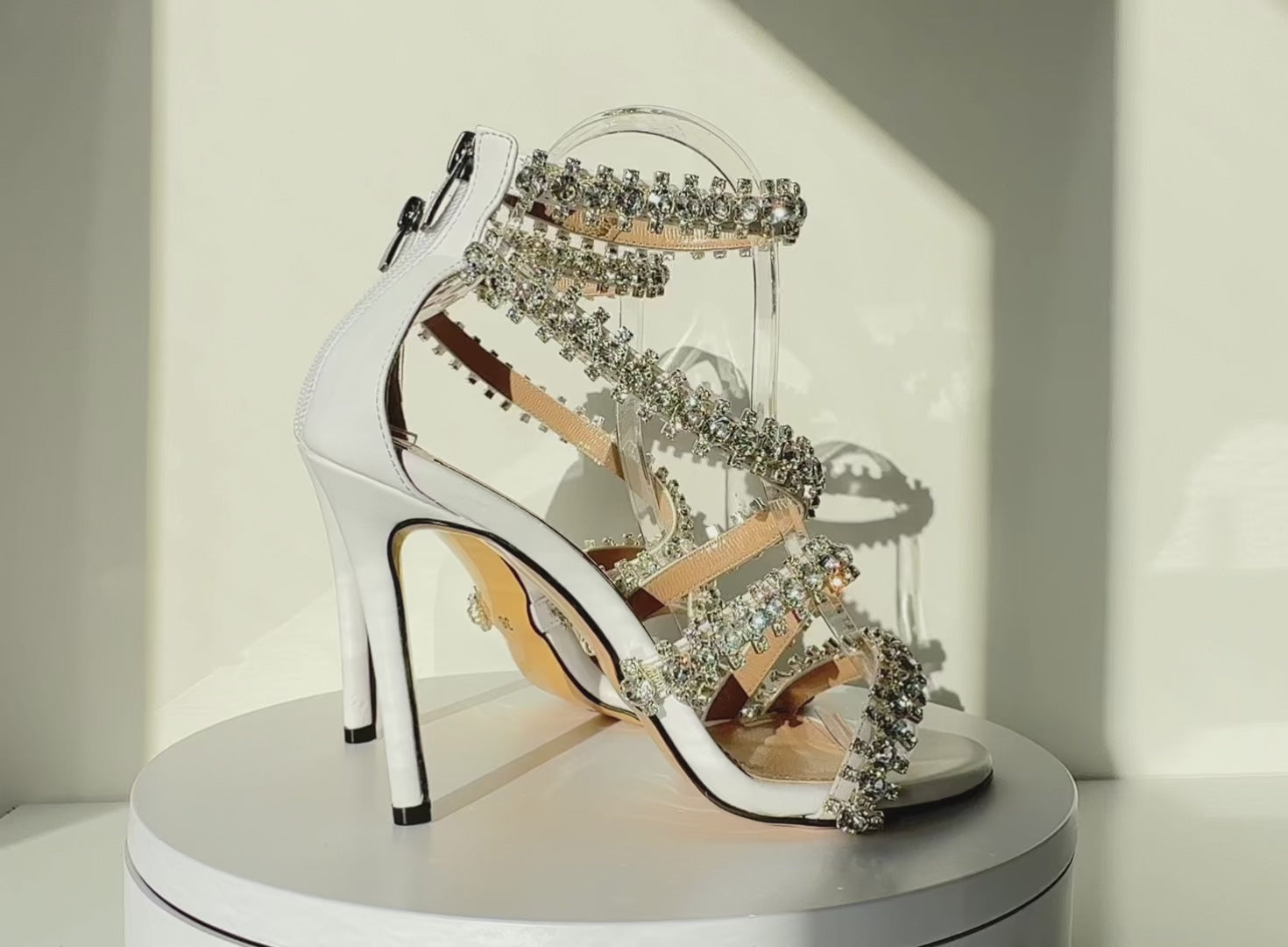 White Diamante Embellishment Open Toe and Zipper Heels